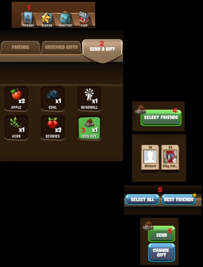 - Send different gifts to Egypt/Scandi-player than you send the rest. (these 2 regions require lots of stone, coins(send windmills = 50 coins) and a bit more roots)