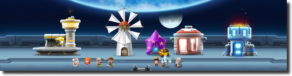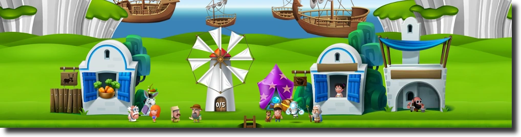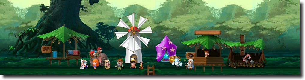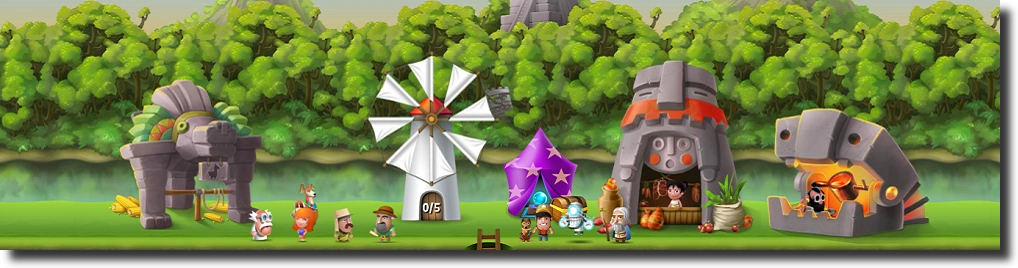 Offers cheap equipment for coins in the Shop Decorations give a possibility of exchanging lumber, stone and coins into experience |