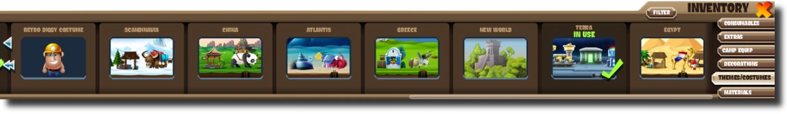 In order to switch between your camp themes, you open your "Inventory" and select the "Themes/Costumes" tab.